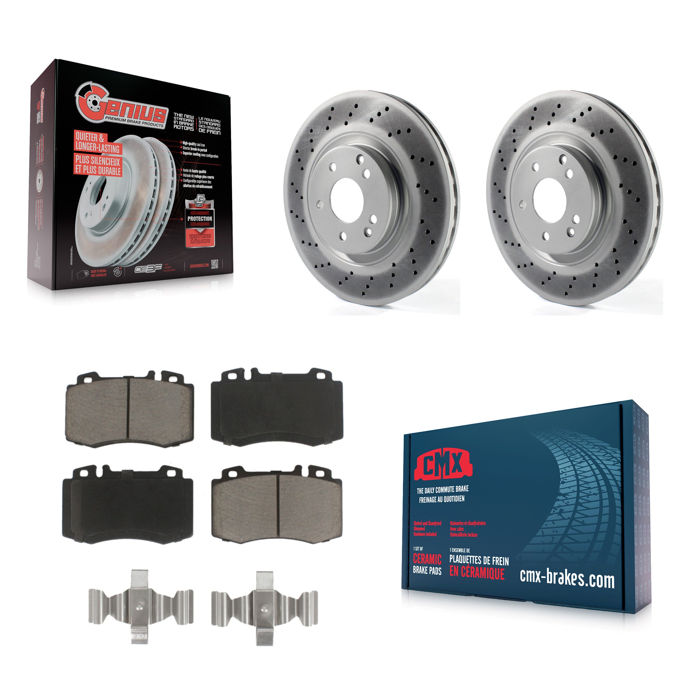 - 2x Front Coated Drilled Genius Disc Brake Rotor (Both Sides)