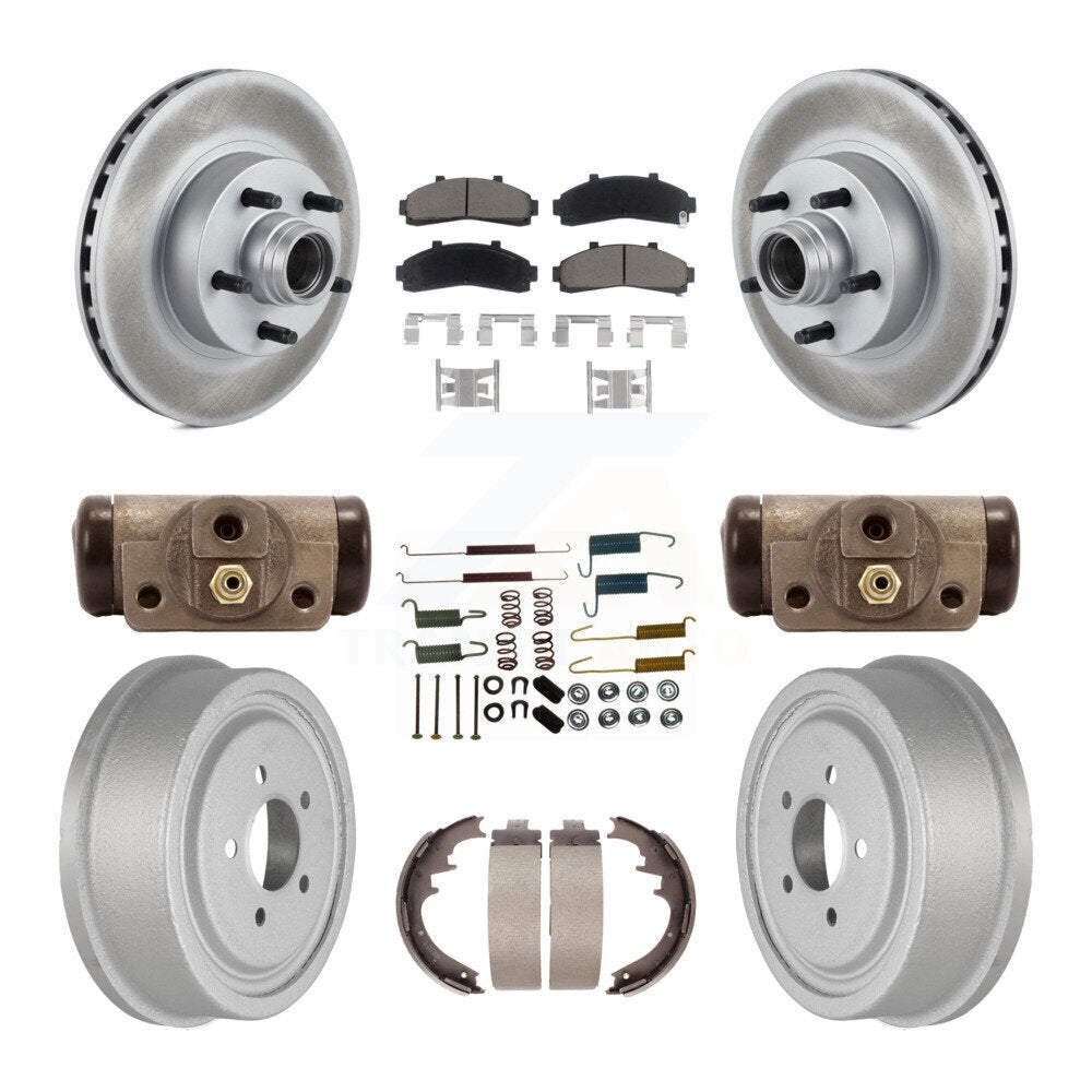 Front Rear Coated Disc Brake Rotors Ceramic Pads And Drum Kit (9Pc) For Ford Ranger With 10" Diameter KGC-102121