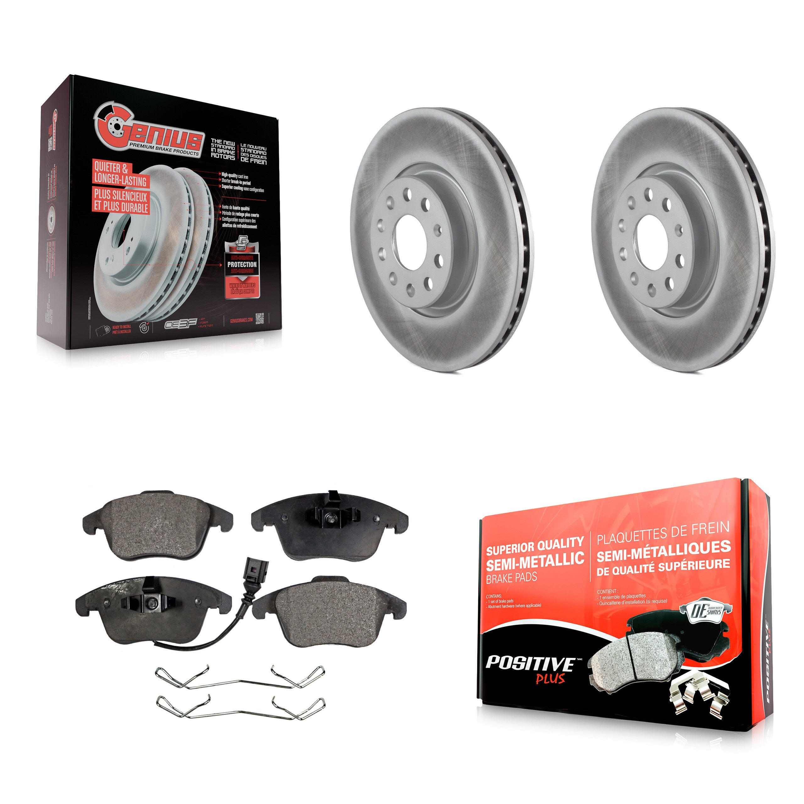 - 1x Front Semi-Metallic Positive Plus Brake Pad Set (With Sensor) (Hardware Included)