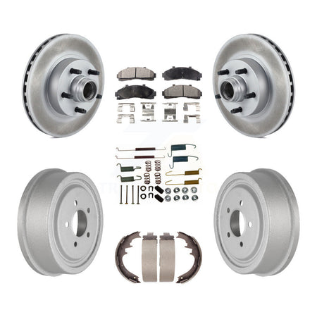Front Rear Coated Disc Brake Rotors Hub Assembly Semi-Metallic Pads And Drum Kit (7Pc) For Ford Ranger With 10" Diameter KGF-101639