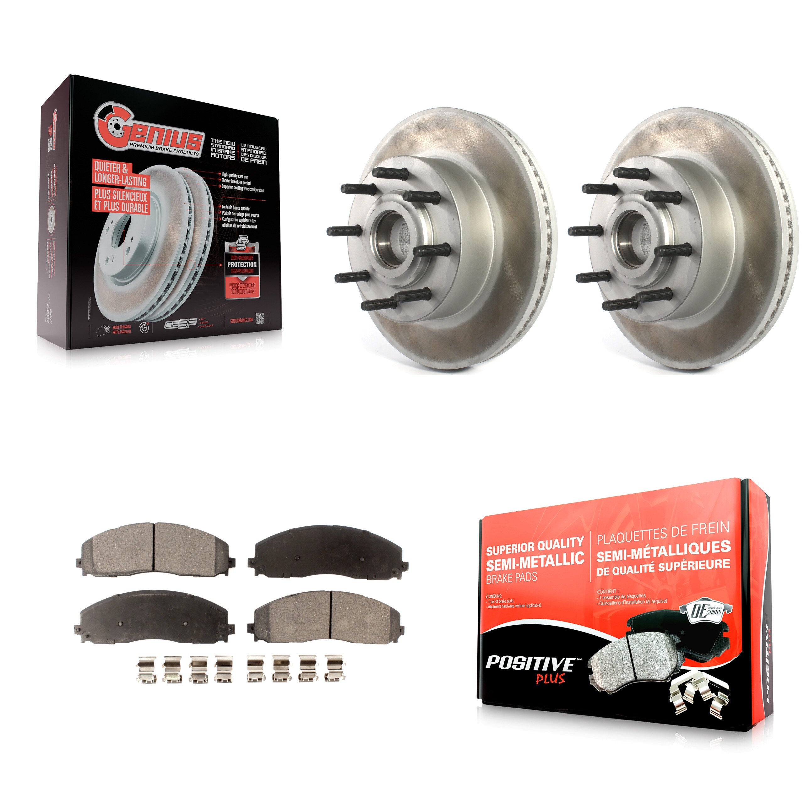 - 2x Front Coated Genius Disc Brake Rotor and Hub Assembly (Both Sides)