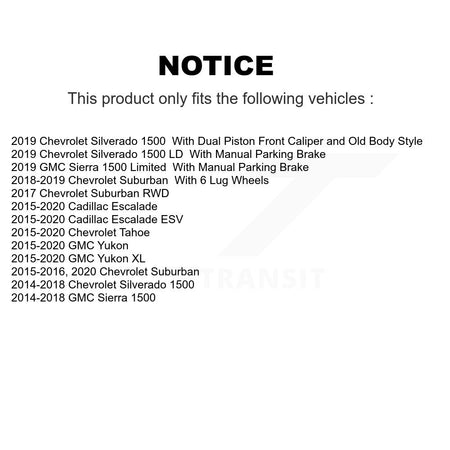 Rear Coated Disc Brake Rotors And Semi-Metallic Pads Kit For Chevrolet Silverado 1500 GMC Sierra Tahoe Suburban Yukon Cadillac XL Escalade ESV LD Limited KGS-101154