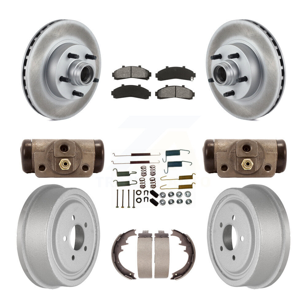 Front Rear Coated Disc Brake Rotors Semi-Metallic Pads And Drum Kit (9Pc) For Ford Ranger With 10" Diameter KGS-102127