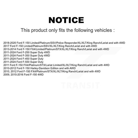 | 2018 | Ford | F-150 | Limited/Platinum/SSV/Police Responder/XL/XLT/King Ranch/Lariat and with 4WD | Front |