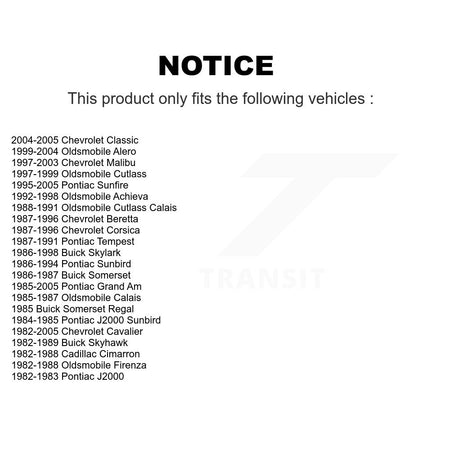 Front Ball Joints Pair For Chevrolet Cavalier Pontiac Grand Am Malibu Oldsmobile Alero Sunfire Classic Corsica Buick Skylark Cutlass Beretta Sunbird Achieva Calais Skyhawk J2000 Firenza KTR-101184