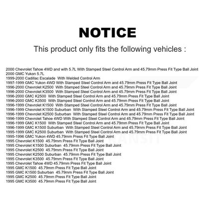 Front Suspension Ball Joints Pair For Chevrolet K1500 GMC Tahoe Suburban K2500 Yukon K3500 Cadillac Escalade KTR-101193