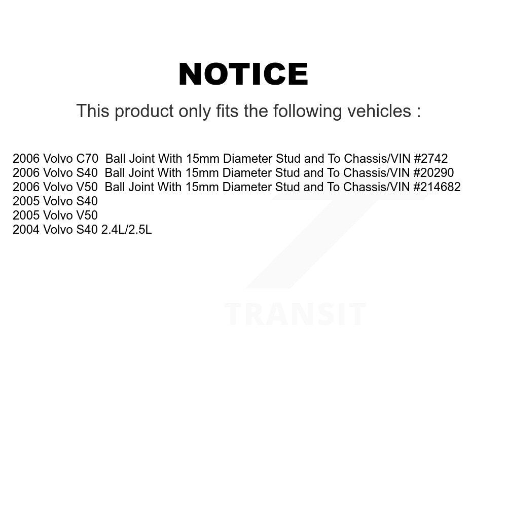 Front Suspension Control Arm And Ball Joint Assembly Kit For Volvo S40 V50 C70 KTR-101418