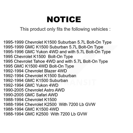 | 1995 | Chevrolet | K1500 | Bolt-On Type | Front |