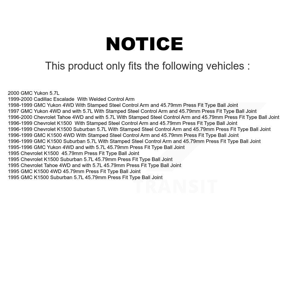 Front Suspension Ball Joints Kit For Chevrolet K1500 Tahoe GMC Suburban Yukon Cadillac Escalade KTR-101787