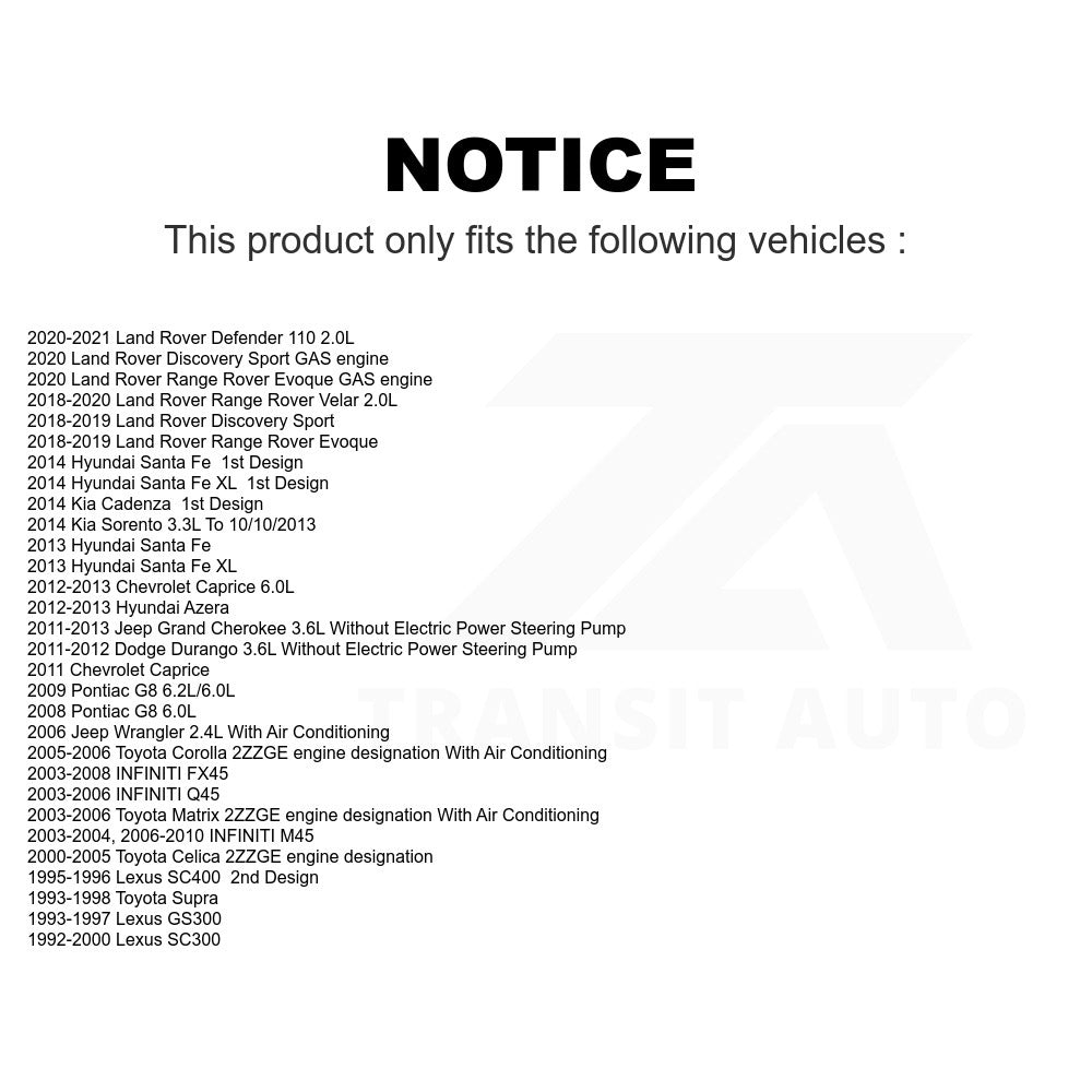 | 2020 | Land Rover | Discovery Sport | All | N/A | All | All | GAS | Main Drive |