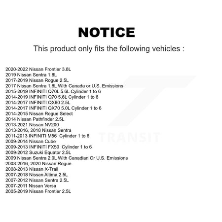 | 2010 | INFINITI | FX50 | Cylinder 1 to 6 | N/A |