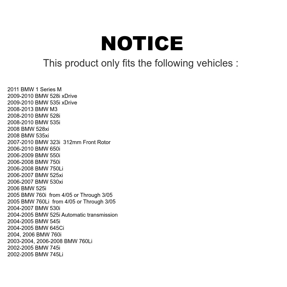| 2008 | BMW | 535i | All | N/A | All | All | All | All | Front |