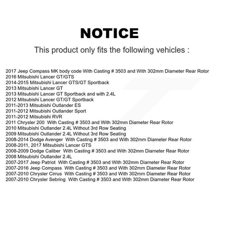 With Casting # 3503 and With 302mm Diameter Rear Rotor